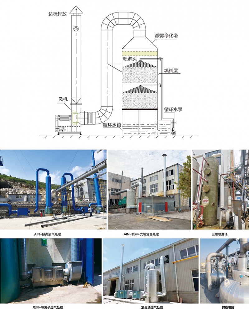 廢氣凈化噴淋塔主要的運作方式是廢氣由風(fēng)管引入凈化塔,經(jīng)過填料層,廢氣與氫氧化鈉吸收液進(jìn)行氣液兩相充分接觸吸收中和反應(yīng),廢氣經(jīng)過凈化后,再經(jīng)除霧板脫水除霧后由風(fēng)機排入大氣。吸收液在塔底經(jīng)水泵增壓后在塔頂噴淋而下,回流至塔底循環(huán)使用。凈化后的廢氣達(dá)到地方排放標(biāo)準(zhǔn)的排放要求,低于國家排放標(biāo)準(zhǔn)。